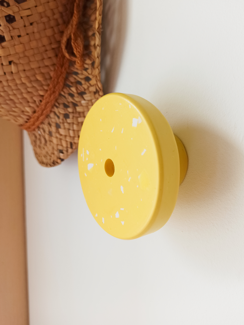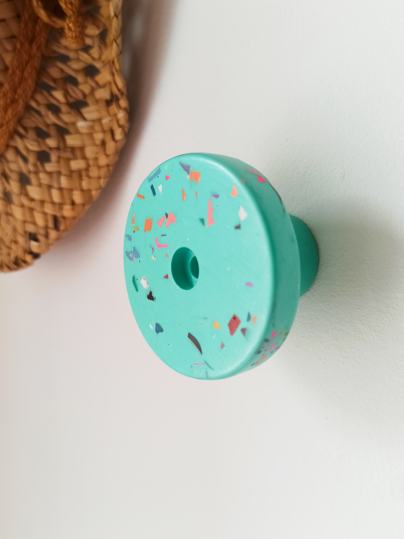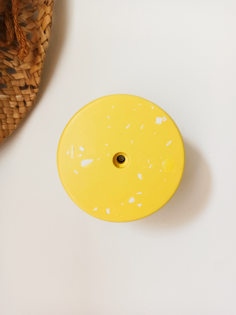 Fabriquée à la main en Jesmonite, une matière écoresponsable et résistante, chaque pièce est unique grâce à ses motifs terrazzo colorés.